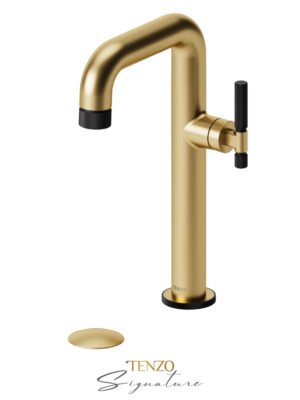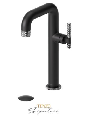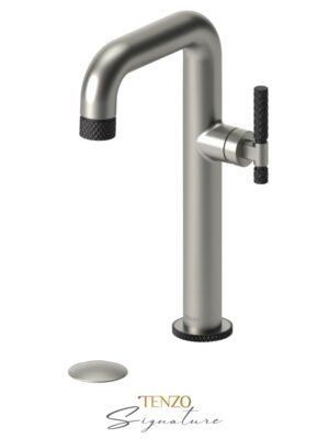 Tall single hole lavatory faucet with drain